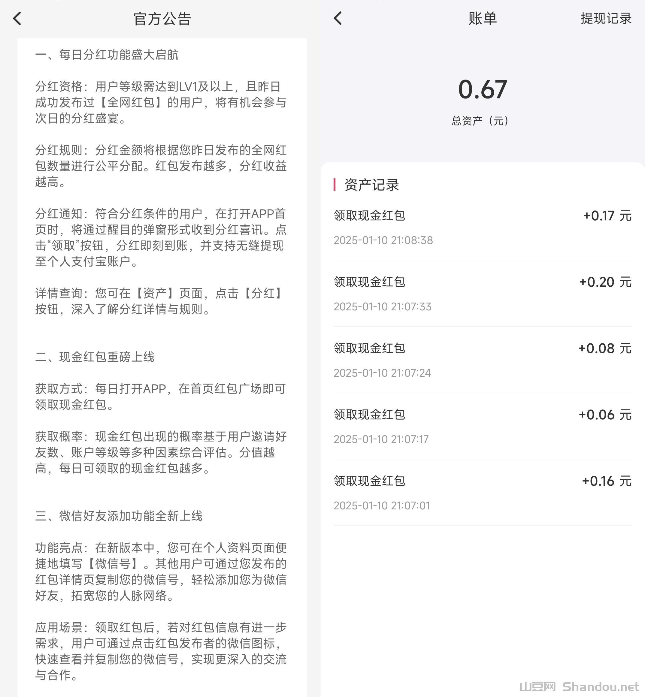 正文 【红联网络】与享视达成合作伙伴价值无限未来可期,马上减产抓紧上车 秒到网 V管理员 /01-04/32阅读/0评论 0104 【红联网络】与享视达成合作伙伴,抢占高产时期,马上要减产了1⃣每天可领取12个洪包,后续开放广告赚功能2⃣红联网络是一款集洪包发放、领取、互动与商业宣传于一体的创新APP。用户可以在这里轻松发放洪包吸引关注,同时也可以通过领取洪包获得实际收益。3⃣现在奖励最高每日官方发一亿红豆4⃣每日可直接领取红包,还可参加每日分红!更多玩法公告了解