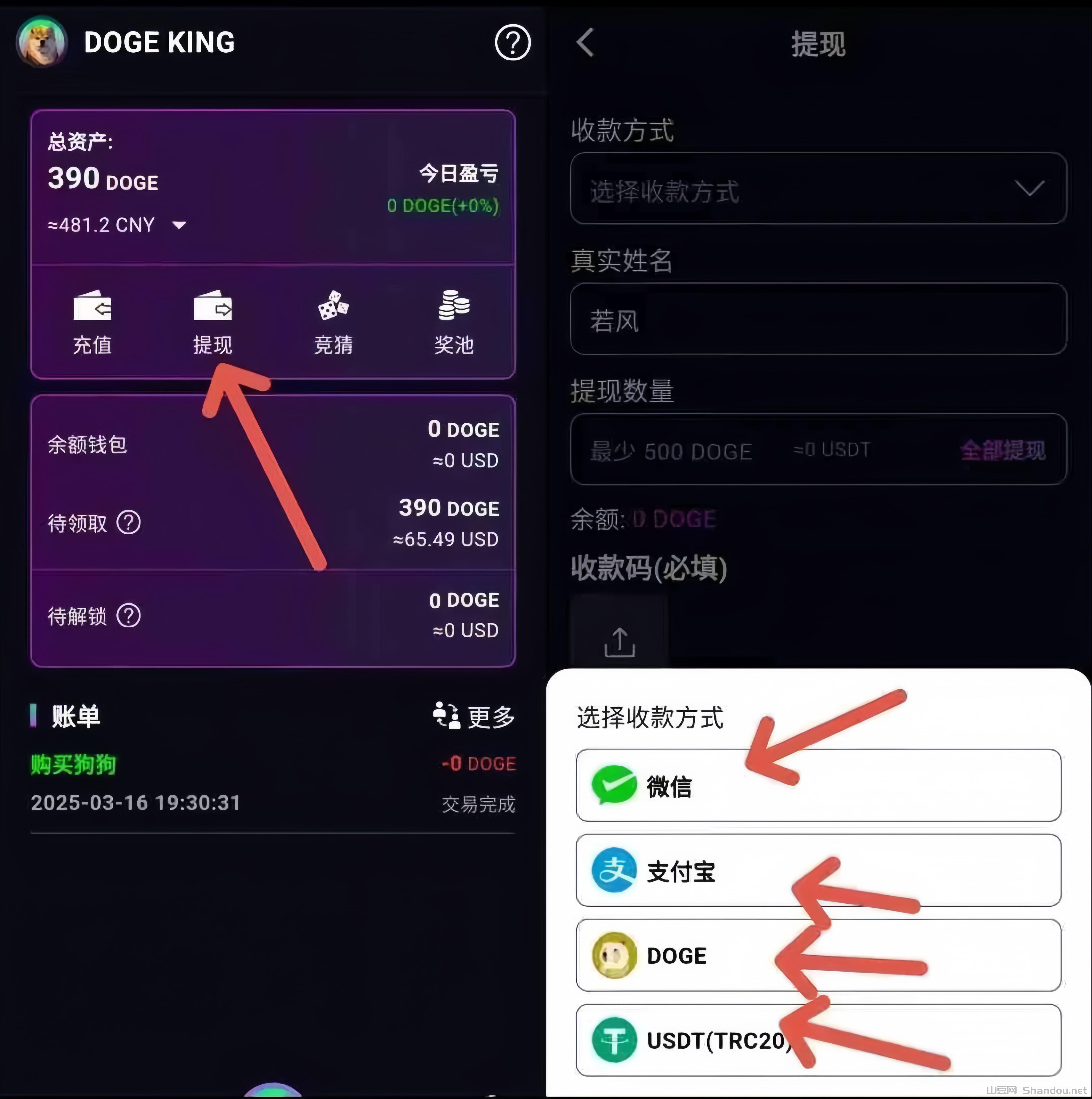 ①:打开 DOGE KING,点击“我的”界面!