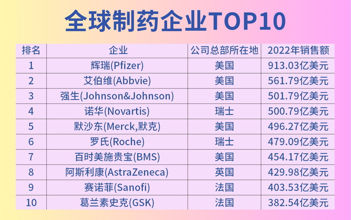 2025年基于市值及行业影响力的全球十大医药巨头分别是礼来、强生、艾伯维、诺和诺德、吉利德科学、辉瑞、罗氏、默沙东、UCB、百时美施贵宝。