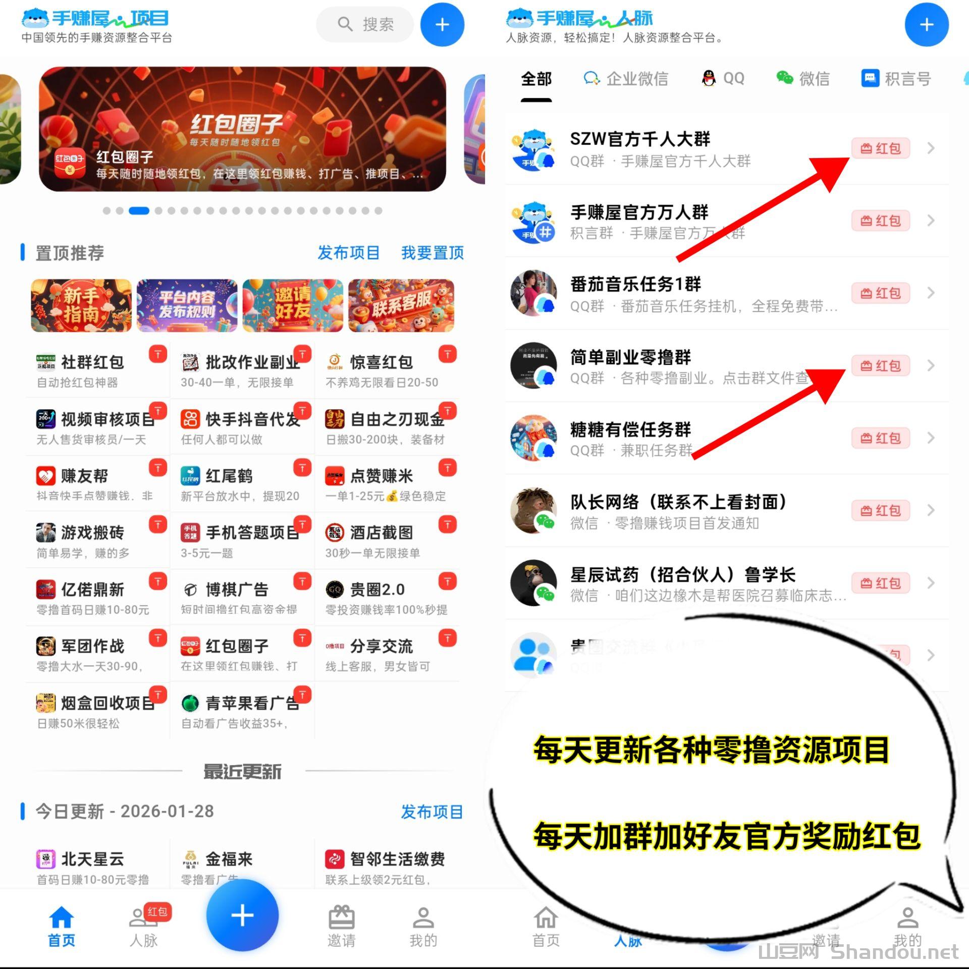 下载加入(手赚屋)哪怕你是小白,每天做任务加好友加群聊,你每天也轻松赚几十到一百元。